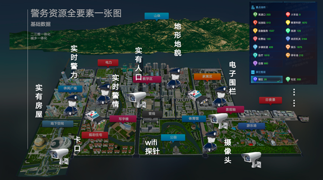 数据资源中心建设,体现“平台+数据+服务”的思想,实现各类时空数据资源的整合,建设形成汇集基础信息数据、警用业务数据信息两大主要来源的信息资源数据库,从数据汇集、整合处理、更新维护、管理的全流程设计资源路径,并引入数据仓库、大数据处理等技术,满足时空数据服务的灵活应用需求。